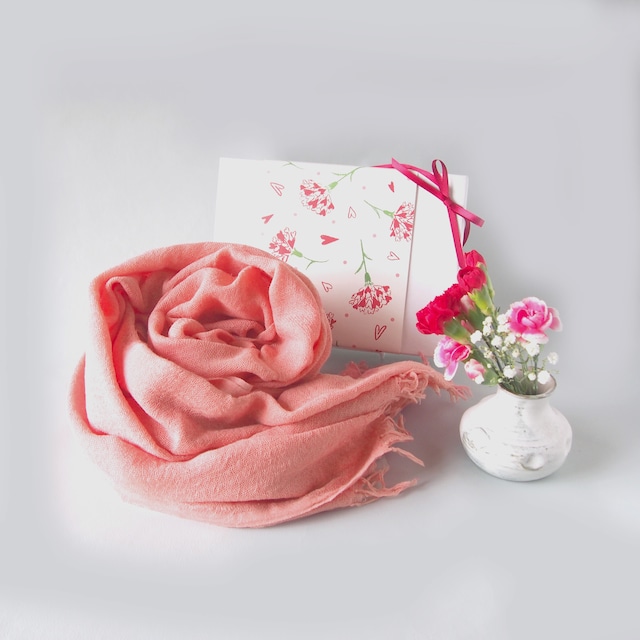 《インドアカネ染め》草木染めの国産かや織りストール/ギフトボックス入り 母の日に、ありがとうの気持ちを込めて―― 天然植物染料「インドアカネ」でやさしく染め上げた、顔まわりをふんわり明るく彩るストールをご用意しました。 昔ながらの技法で丁寧に織り上げられた国産のかや織り生地は、蚊帳としても使われてきた伝統ある素材。吸水性・速乾性に優れ、軽やかなボリューム感と綿100%の心地よい肌ざわりが魅力です。アイロン不要でナチュラルな風合いもそのままお楽しみいただけます。 大判サイズ(約100㎝×185㎝)なので、冷房対策や日よけにショールのように羽織ったり、首元に巻いたりと使い方は自由自在。小さく畳めるので、お出かけにも便利です。 ひとつひとつ手染めで仕上げているため、世界に一つだけの特別な一点もの。 「ありがとう」をカタチにした、心温まるギフトとして、きっとお母様の笑顔を引き出してくれるはずです。 ※商品画像に写っている花や花瓶は付属しません。 ── 【手染め作品について】 手作業で一枚一枚染めているため、季節や気温によって色合いや風合いに個体差が生じることがあります。 ※商品画像はサンプルです。 (すべて手作業で染めているため、染め上がりに個体差があり、 ムラや黒い斑点が見える場合がありますが、手染めならではの風合いとしてお楽しみください。) *その他、生地の詳細やご購入にあたりまして記載事項を プロフィールまたは別ページにまとめてありますので、ご購入前に必ずご確認くださいませ。 https://shop.mine-textile.com/blog/2021/11/29/111219