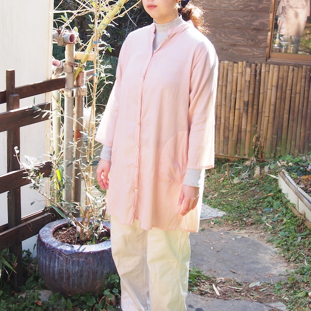 桜染め ロングブラウス 〈オーダー品〉 受注期間:1月21日〜1月28日(1週間限定) お届け予定:2月末ごろ ※染めから仕上げまで、すべて手作業で行うため、 天候や染料の状態により前後する場合があります。 ご注文をいただいてから、 その年の桜の枝を使い、一点ずつ染め上げます。 軽やかで、ほんのり透け感のある生地は、 見た目にも涼やか。 桜染めの色が、やわらかく肌になじみます。 貝殻ボタンが、さりげないアクセントに。 前を開けて、羽織りとしてもお使いいただけます。 ヒップが隠れるほどよい丈感で、 長すぎず、すっきりとした印象。 春から夏にかけて、 さまざまな装いに寄り添う一着です。 「オーダーについて」 ・本商品は【受注染め】となります。 ・ご注文確定後の制作となるため、返品・交換はお受けできません。 ・桜の状態や気候により、色合いには個体差があります。 以上の点をあらかじめご了承ください。 「桜染めについて」 峯の小屋の桜染めは、 花びらではなく、桜の枝から色を抽出しています。 何度も煮出すことで、 黄色みを含んだ淡い桜色から、やさしいピンクまで、 その年ごとの表情が生まれます。 同じ色には仕上がらないことも、 桜染めならではの特徴です。 「サイズ」FREE 着丈:約95cm/ウエスト:約58cm (モデル身長:169cm) 「素材」綿100% 「お手入れについて」 ・中性洗剤を使用し、手洗いをおすすめします ・陰干ししてください ・色移り防止のため、単独洗いをおすすめします 「ご注文前に」 桜染めは、ひとつひとつ仕上がりの色合いが異なります。 自然が生み出す表情や、その年ごとの微妙な色の違いも含めて、 その個性を楽しんでいただける方にお届けできたら幸いです。 ※商品画像はサンプルなります。 (生地は全て手作業で染めているため、生地を切り取る場所によって柄の雰囲気が違います。染めムラや黒い斑点が見えるところがありますが、手作業ならでは1点ものの風合いとしてお楽しみください。) *その他、生地の詳細やご購入にあたりまして記載事項を プロフィールまたは別ページにまとめてありますので、ご購入前に必ずご確認くださいませ。 https://shop.minenokoya.com/blog/2021/11/29/111219