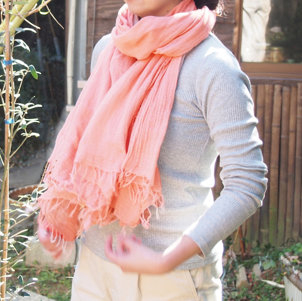 ショールのように羽織ったり、冷房対策や日差し除けにも活躍。