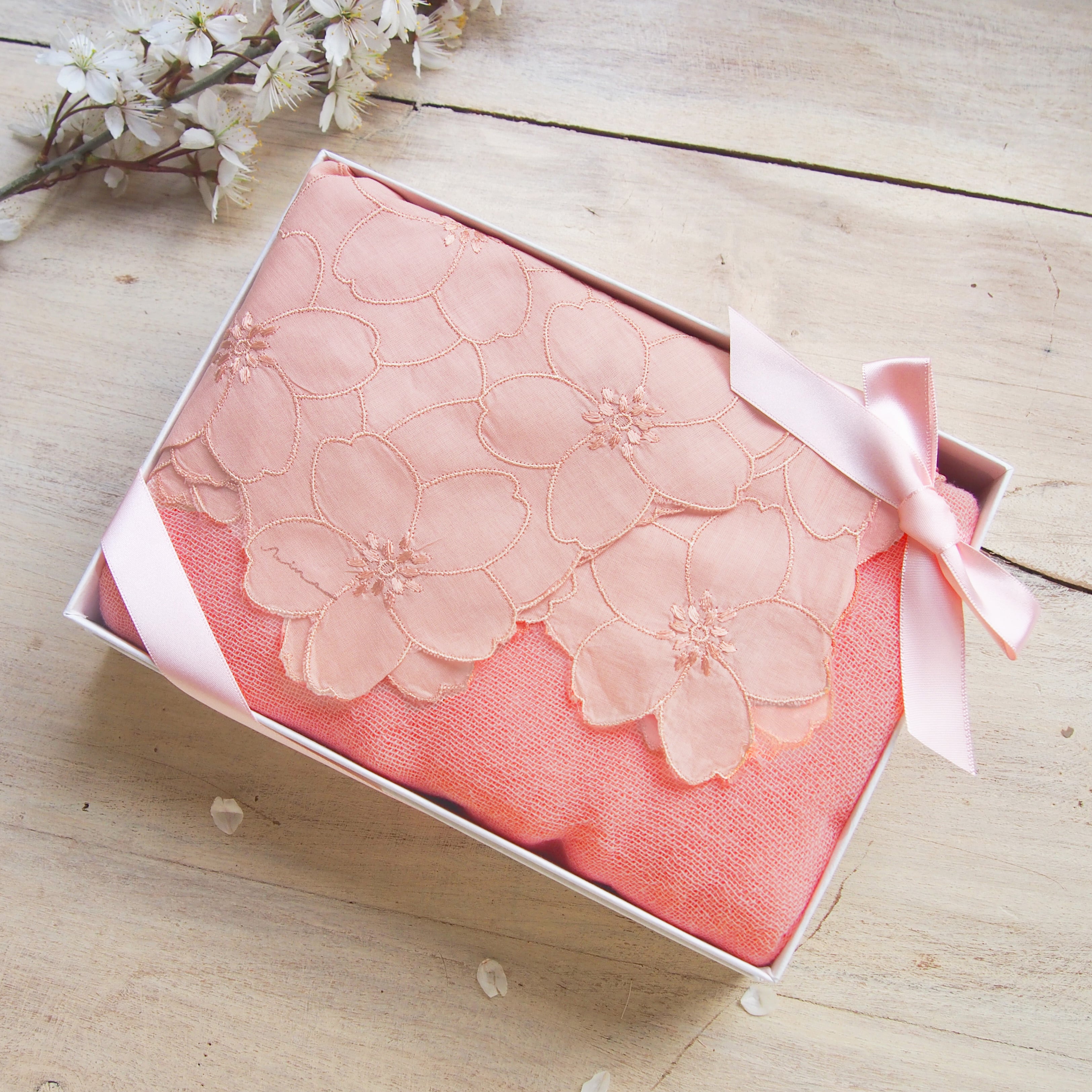 【桜染めギフト】かや織りストール&桜レースハンカチ