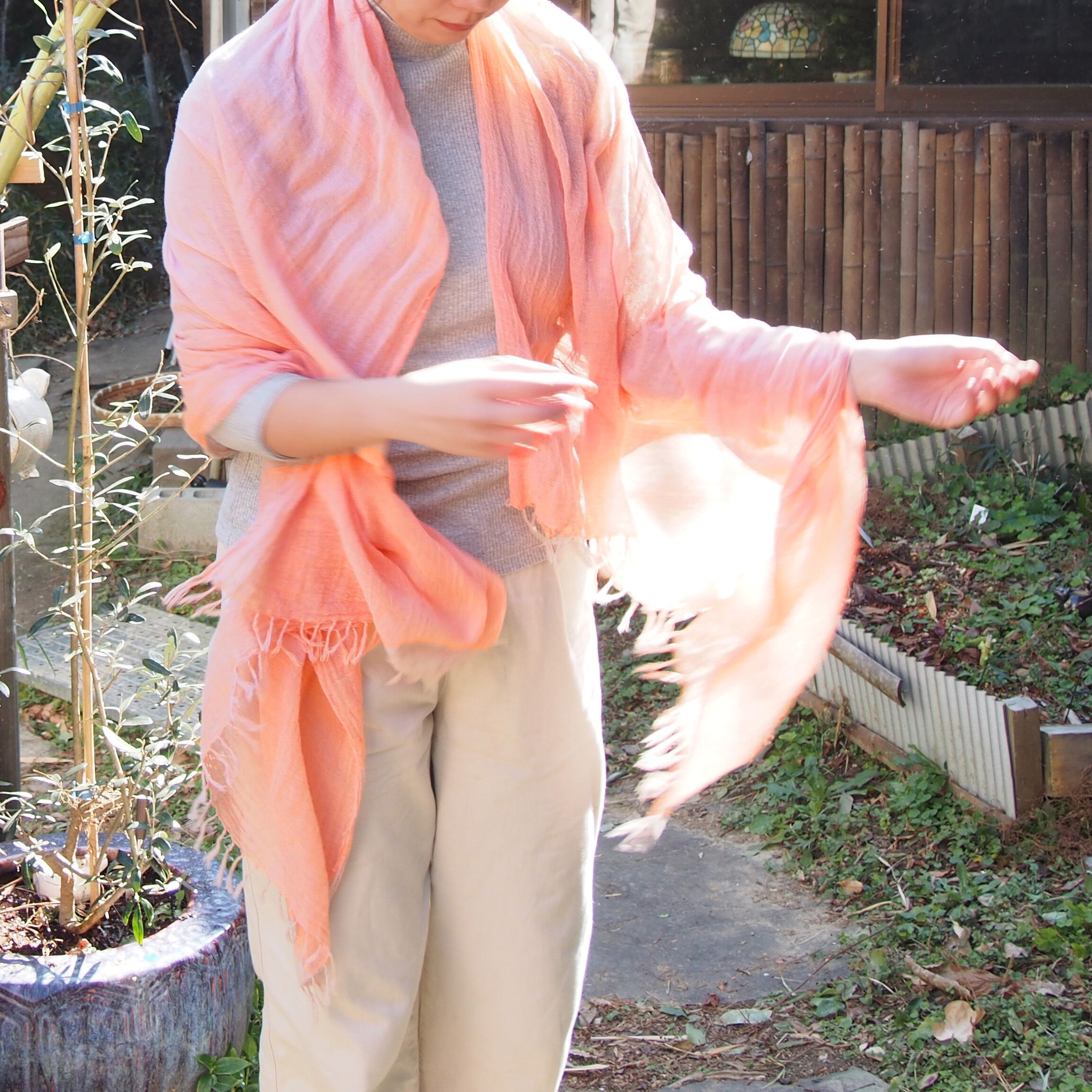 当ブランドの定番アイテム「草木染め」かや織りストール。