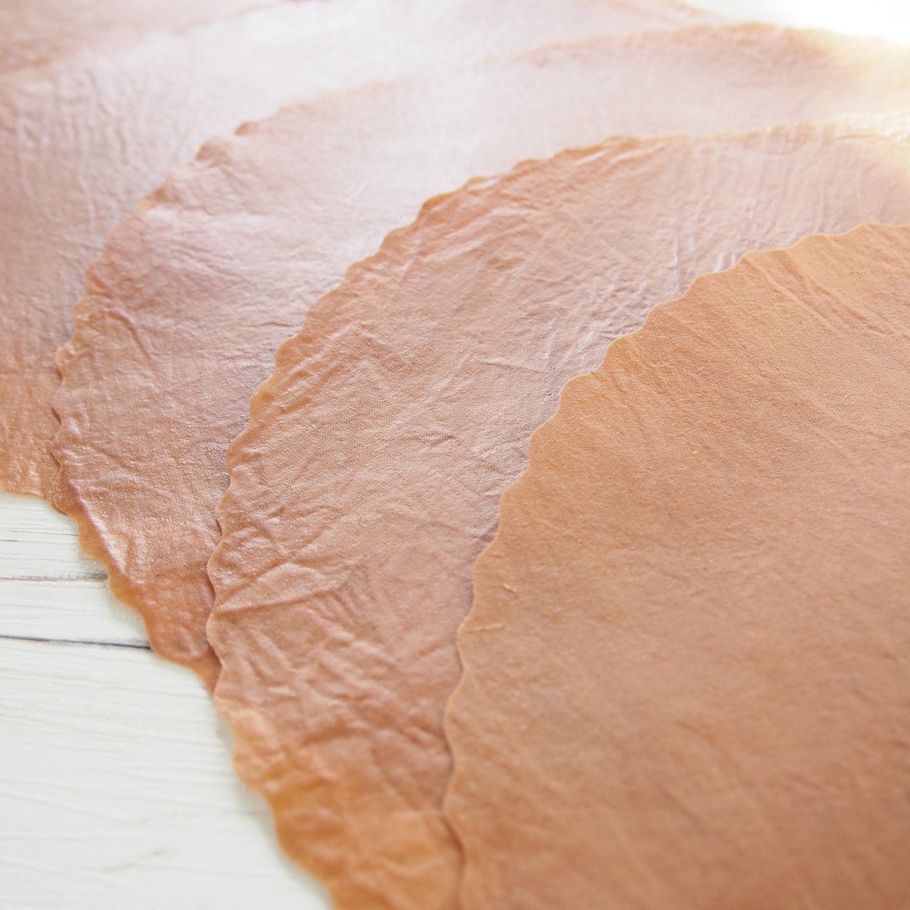 自然の素材を使い、一枚ずつ手作業で染めているため、色合いや濃淡、表情にはそれぞれ違いがあります。