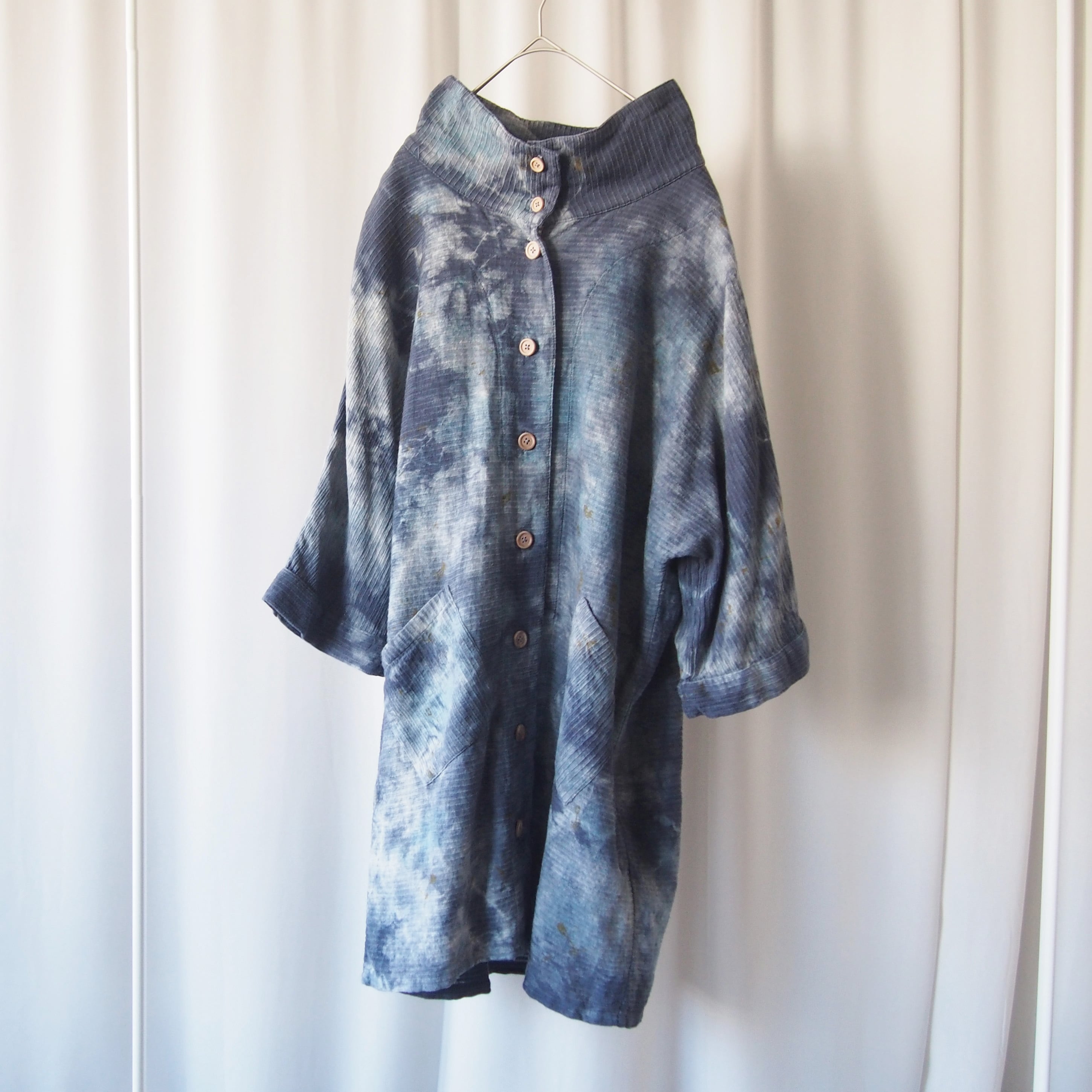 草木に囲まれた工房にて、一枚一枚、丁寧に手染めで仕上げました。自然な色合いと、手仕事ならではのやさしい風合いを大切にしています。