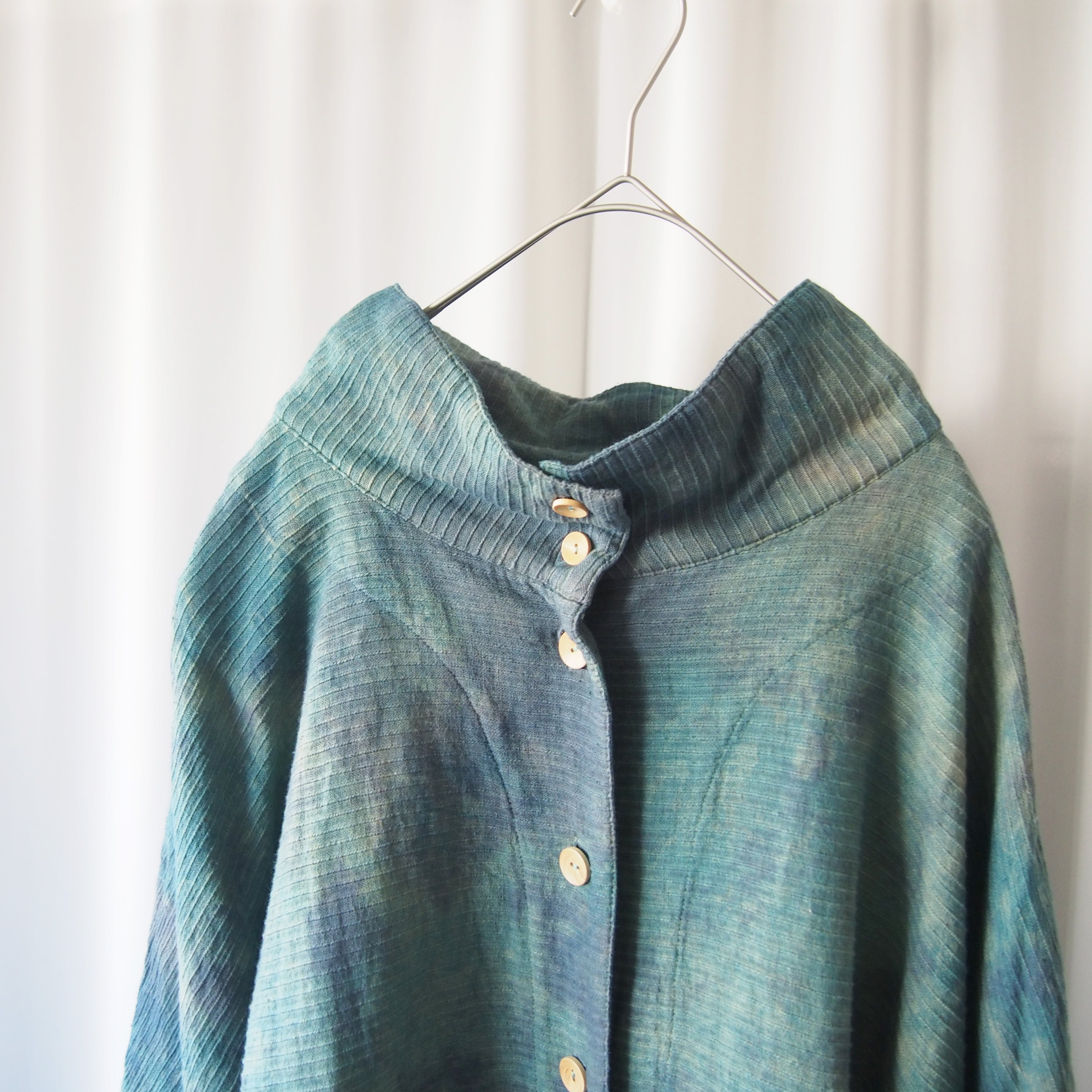 草木に囲まれた工房にて、一枚一枚、丁寧に手染めで仕上げました。自然な色合いと、手仕事ならではのやさしい風合いを大切にしています。