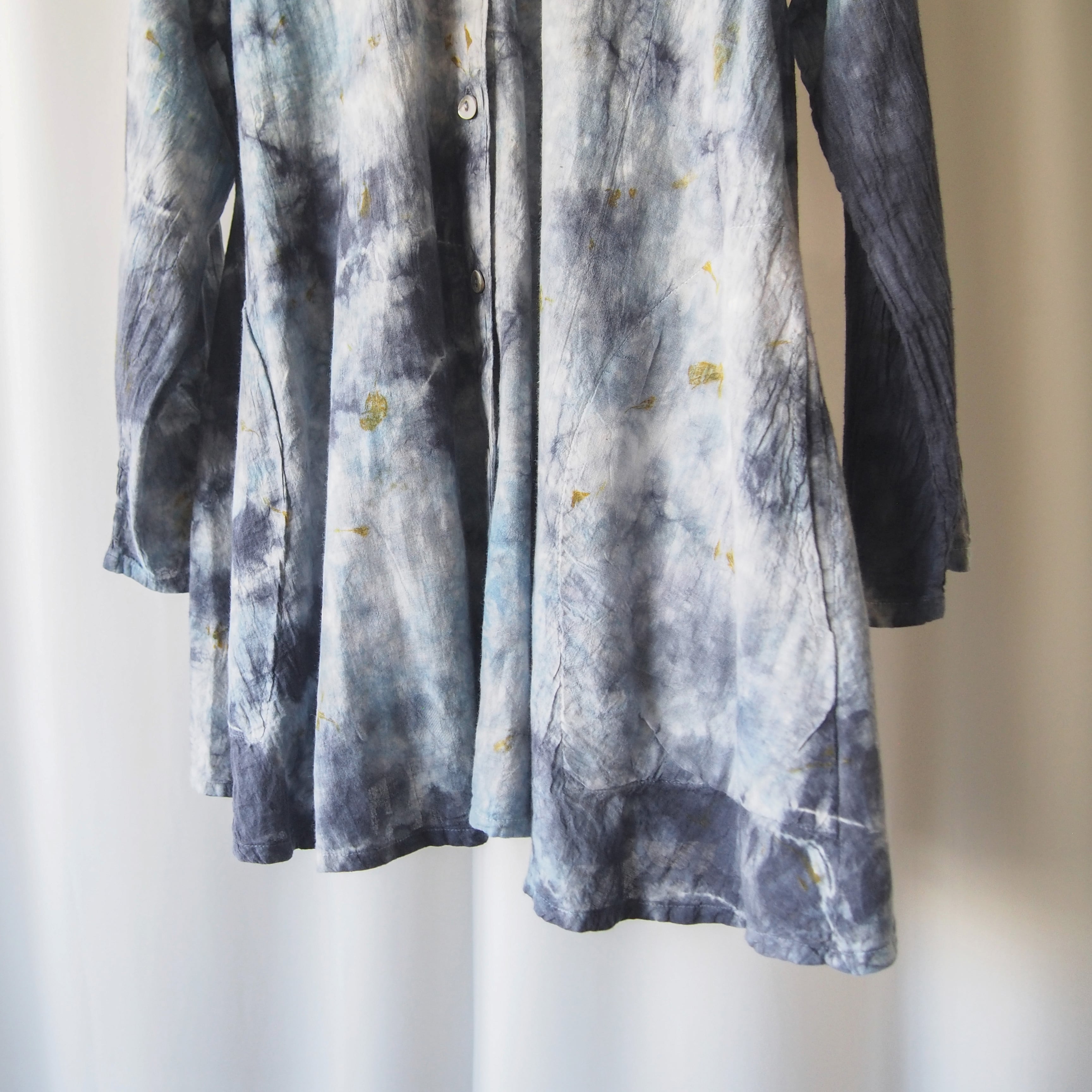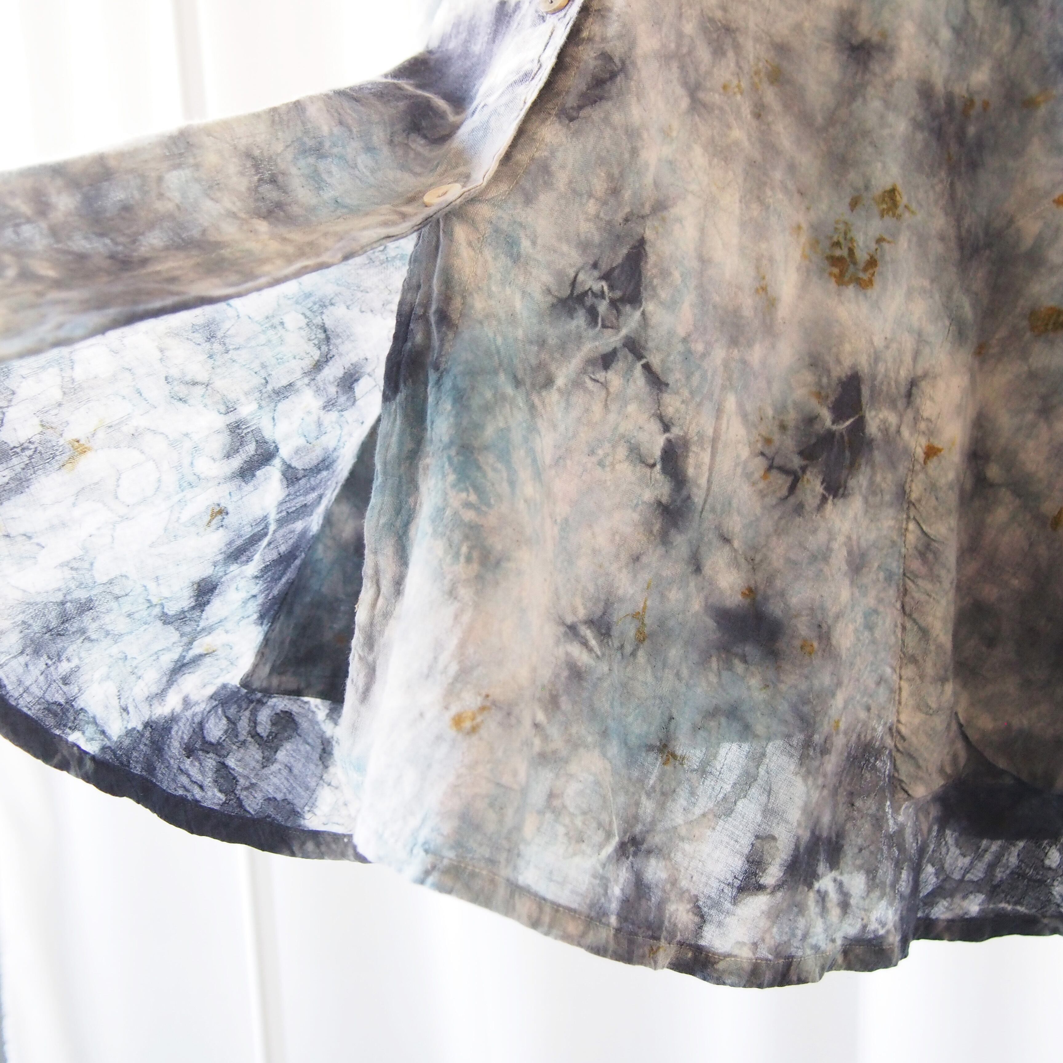 草木に囲まれた工房で、一枚一枚丁寧に手染めを施しました。自然な色合いと、手仕事ならではのやさしく奥行きのある風合いを大切にしています。