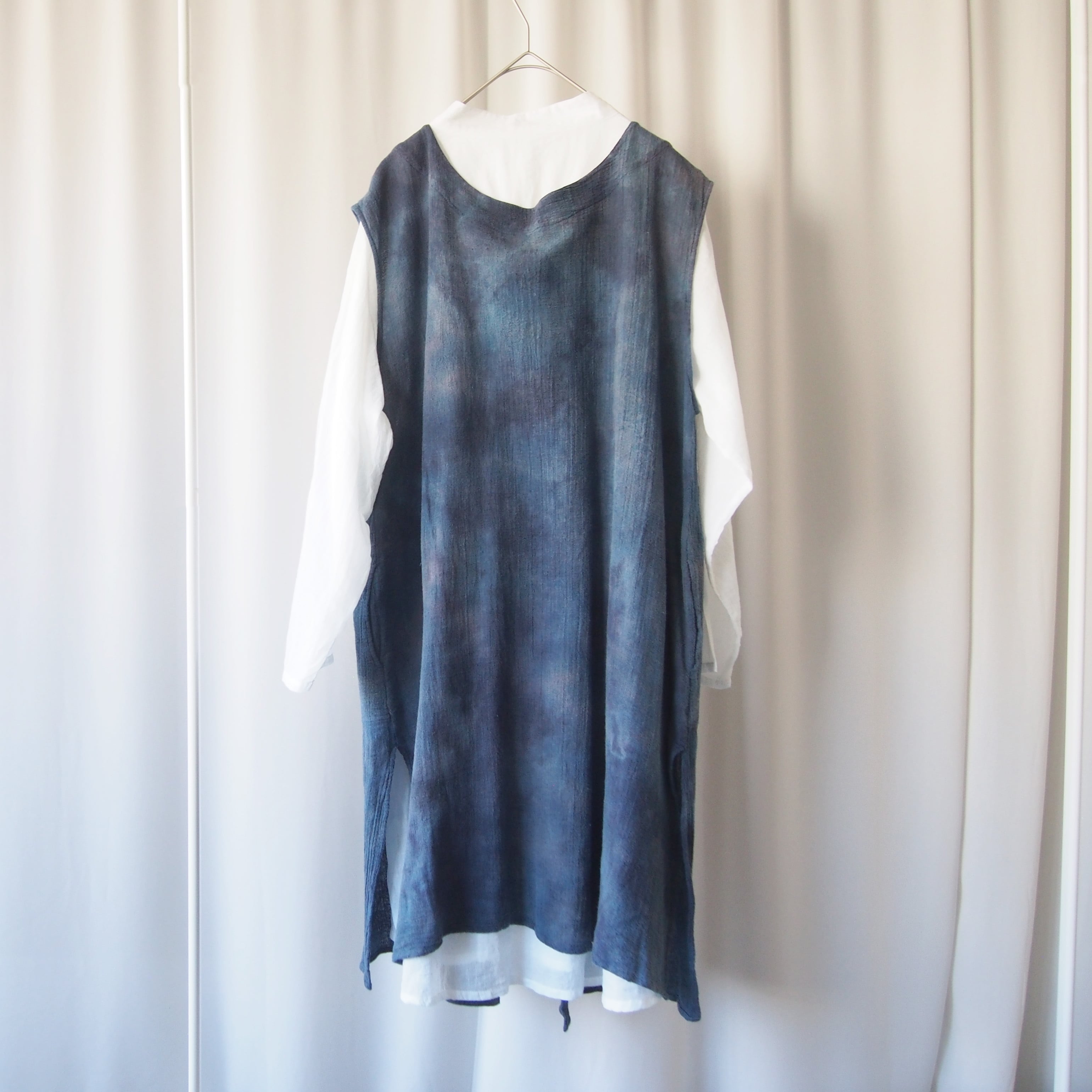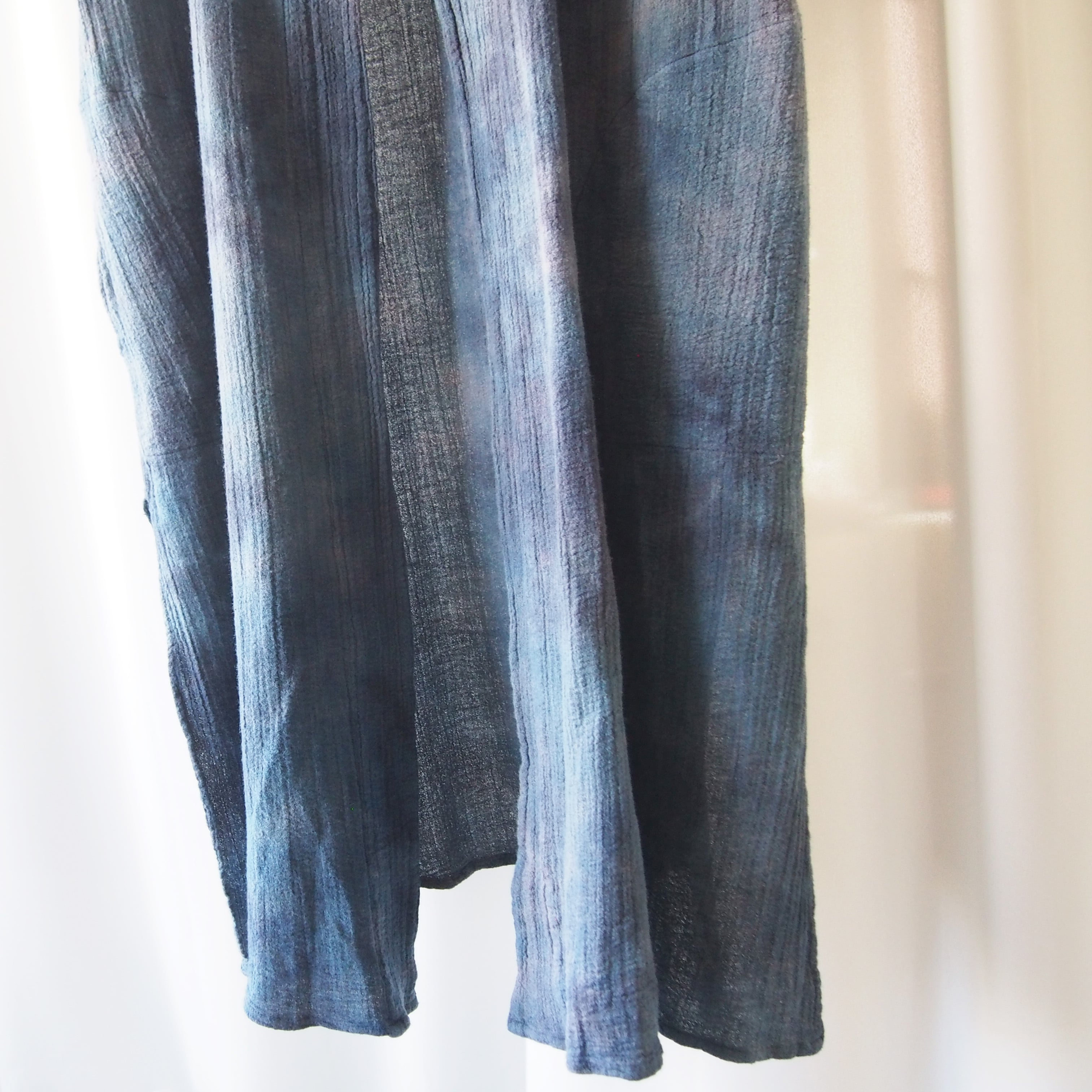 草木に囲まれた工房で、一枚一枚丁寧に手染めを施しました。自然な色合いと、手仕事ならではのやさしく奥行きのある風合いを大切にしています。
