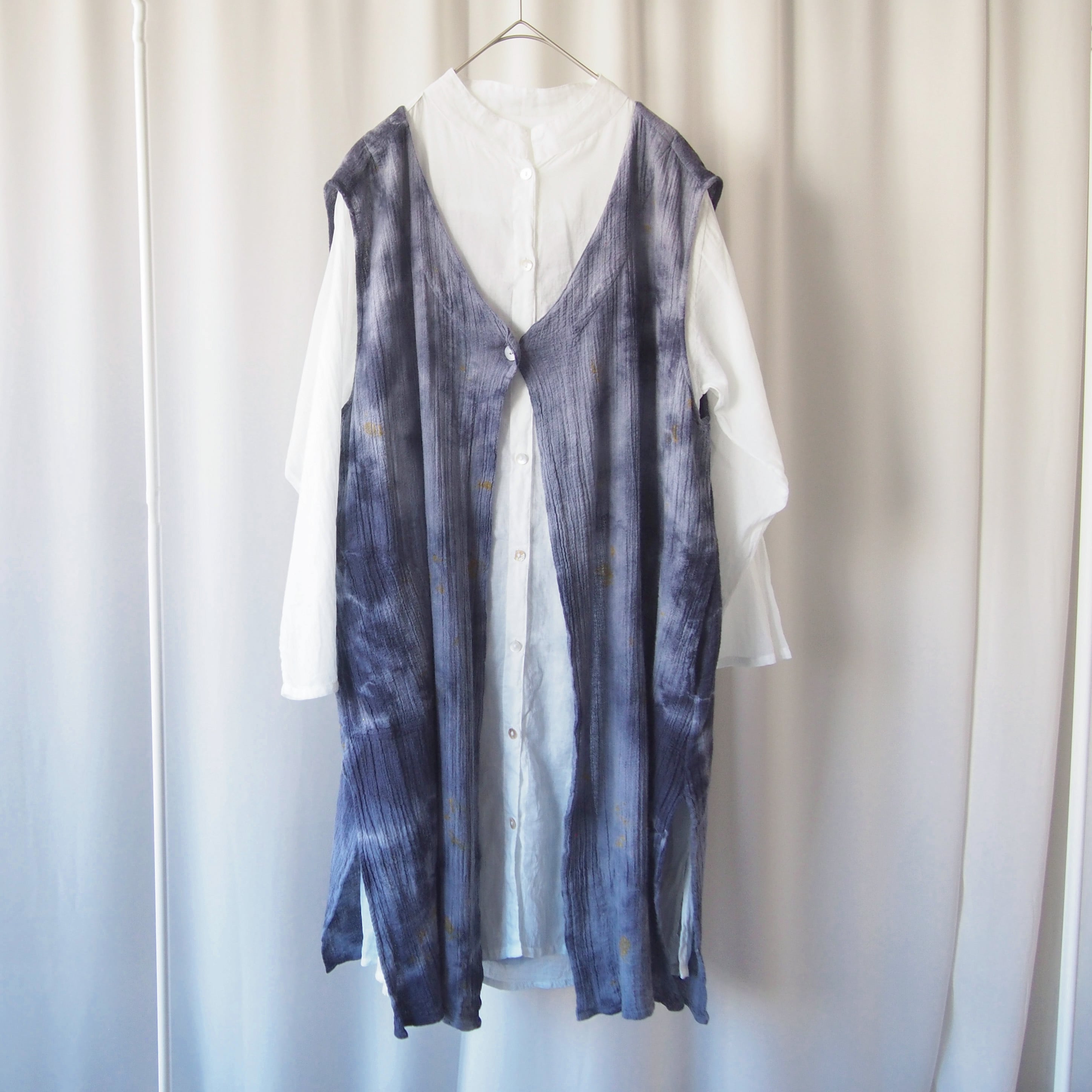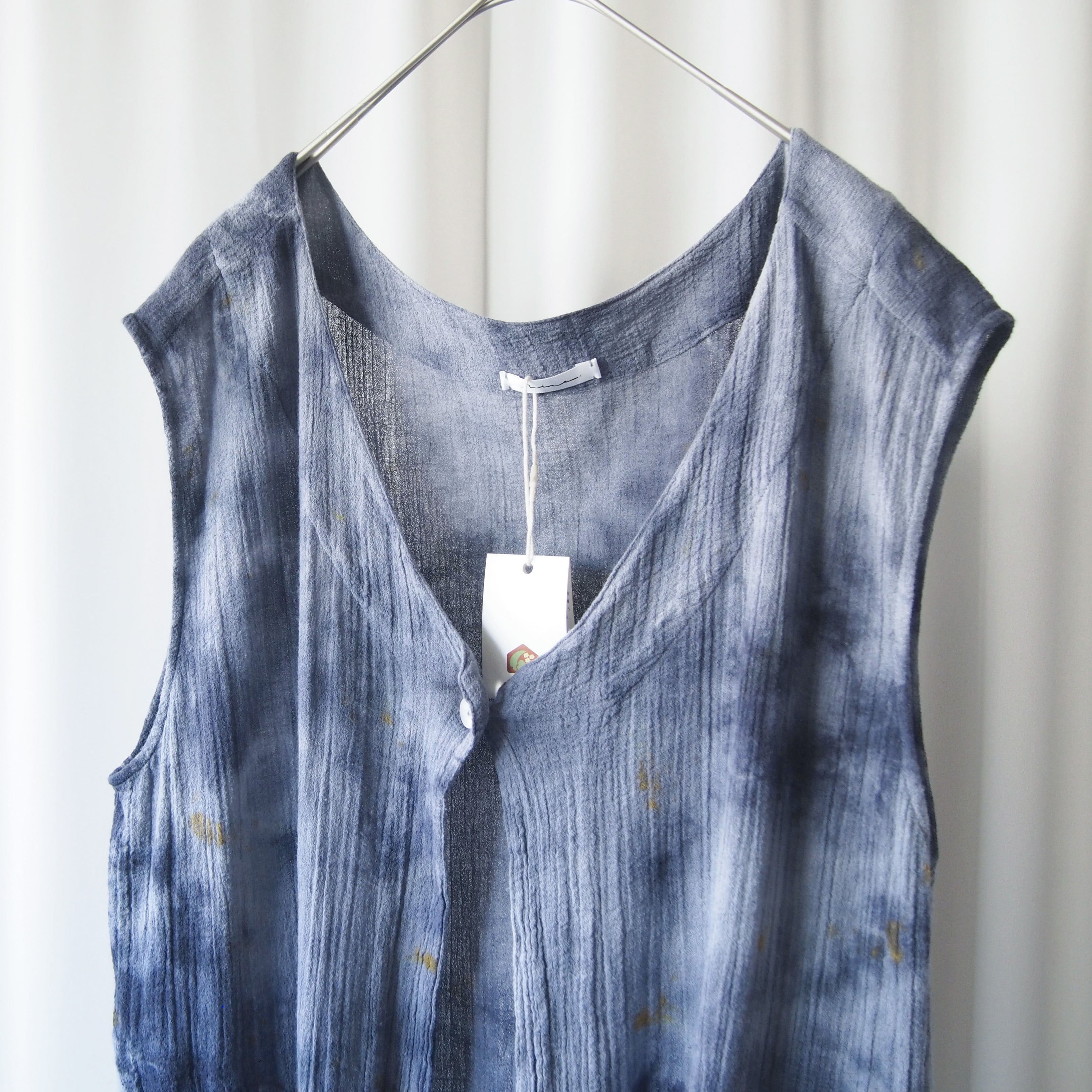草木に囲まれた工房で、一枚一枚丁寧に手染めを施しました。自然な色合いと、手仕事ならではのやさしく奥行きのある風合いを大切にしています。